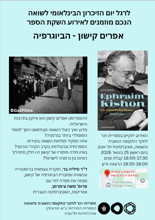 לרגל יום השואה הבינלאומי, ספריית וינר קיימה ערב השקת ספר והרצאה לציון צאתה לאור של הביוגרפיה החדשה על ההומוריסט והסופר אפרים קישון.
